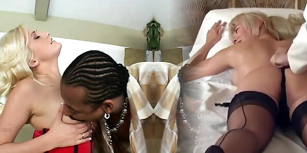 wild ash-blonde fishnet fuckslut gets assfucked by black guys