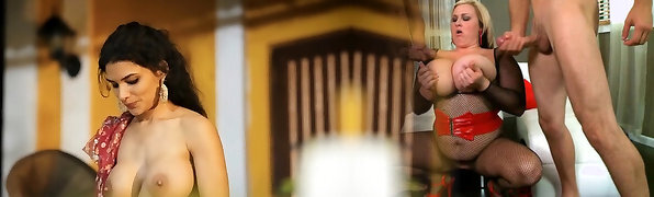 Trampy granny Zora White deepthroats spunk-pump together with her gf