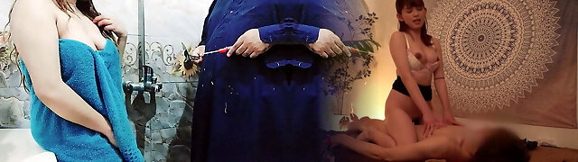 I fill my stepmother with milk after a good rubdown, while dad cooks