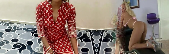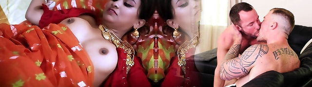 Guiltless Indian girl talked into her first threesome fuck