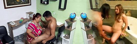 Miss Super Hot and Splendid Professor and Old Step Father teaches his Virgin Son How to Fuck 1st Time