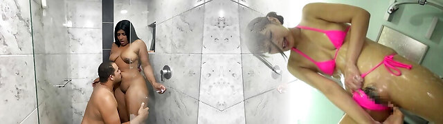 I nail my stepsister because she comes into the bathroom as a surprise and takes a bathroom with me- pornography in Spanish