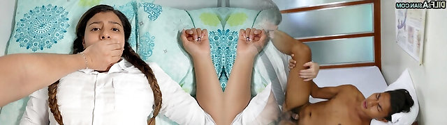 Shh shh don't go squealing! - Stepbrother ravages his stepsister when they are alone at home.