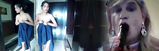 Hot desi girl massaged her hooters and pressed her breasts and sucked the nipples in her mouth.