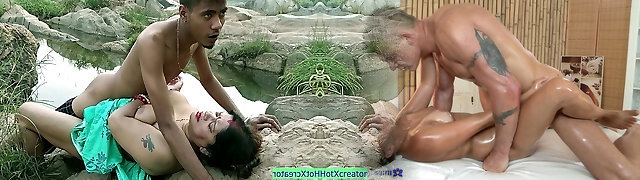indian stunner giving total body massage to young boy happy ending