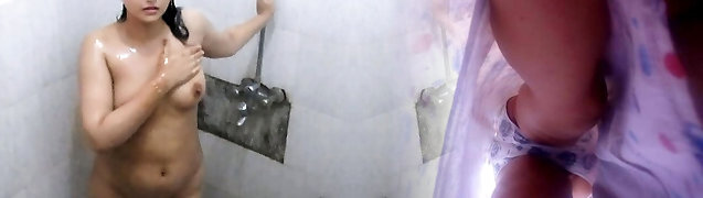 Indian Wife In Douche Taking Bathroom Filmed Playing With Her Big Boobs