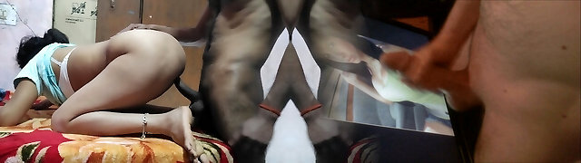 Indian girlfriend drizzling on dick