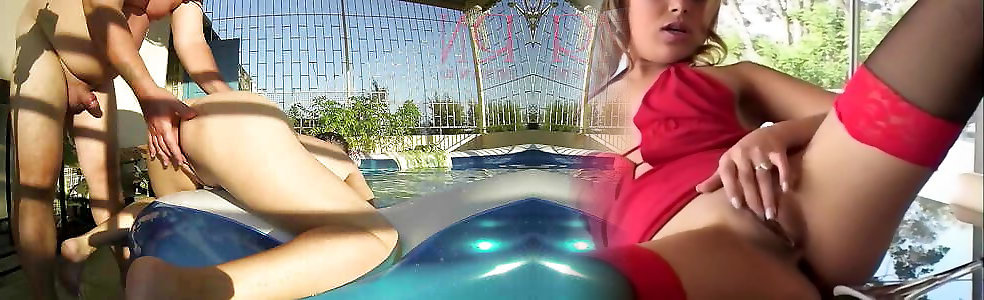 Trio super wondrous swimsuit stunners love girl-on-girl strap dildo fuckfest