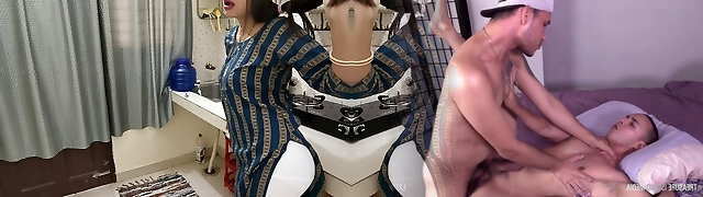 My Indian stepsister comes into my room with a pair of short cutoffs and I end up missing her ass, buttfuck creampie