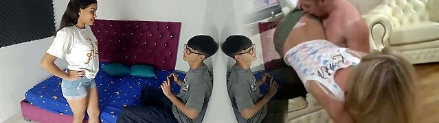 madrastra tiene sexo con hijastro en la sala de estar cuando su esposo no está en casa