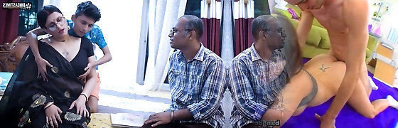 la esposa india quiere obtener su primera doble penetración, por lo que el esposo invita al vecino a ayudar