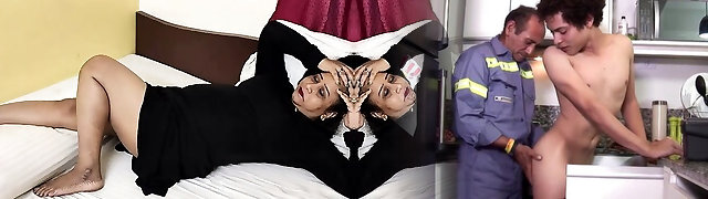 señorita profesora caliente y sexy y viejo padrastro le enseña a su hijo virgen cómo follar por primera vez