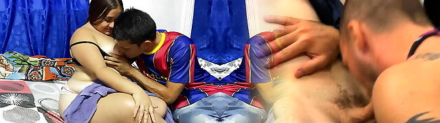 madrastra culona estaba sola en casa y convenció a su hijastro de que se la follaran