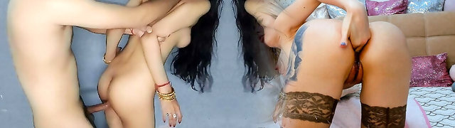 a ella le gusta el estilo bareback para meter mi polla en el coño con fuertes gemidos calientes mientras vive en la webcam