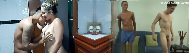 By looking at her stepbrother in the bathroom sis gets porked very hard.