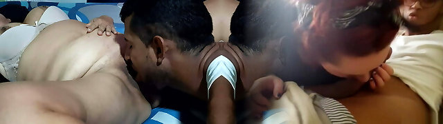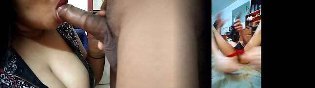 Mozao matando a saudade da namorada e coloca ela pra sentar no pau do maridã_o. Com o cuzinho casal trisal