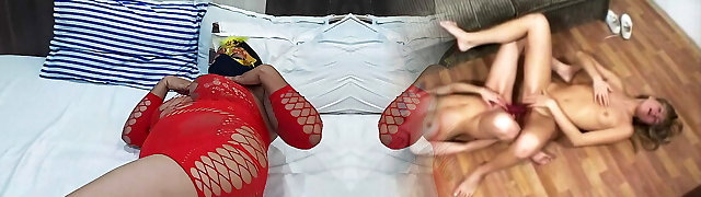 Molten beautiful girls shared and fucked by two friends at b-day party!