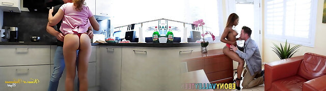 hubby films how another boy fucks my pussy in the living bedroom and in the kitchen then he joins us to film my snatch fucked