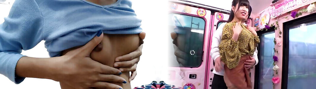 Insatiable dude fumbles and wrings dark puffies of one messy Japanese hoochie