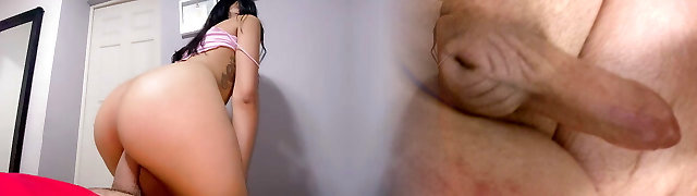 My Indian stepsister comes into my room with a pair of short cutoffs and I end up missing her ass, buttfuck creampie