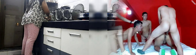 I fill my stepmother with milk after a good rubdown, while dad cooks