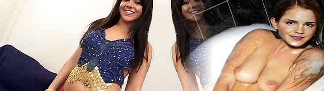 Super-cute Indian wife gets a lot of spunk on her body after threesome fuck