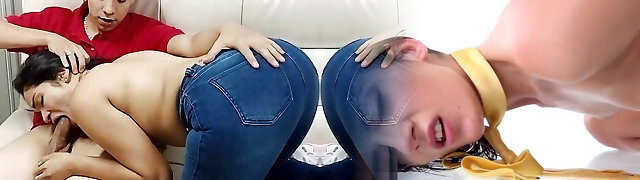 Playing with my stepsister until she gives me some edible blowjobs - Porn in Spanish