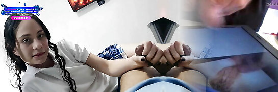 Super-naughty stepsister offers foot touches, ends up sucking and riding cock until milking it.