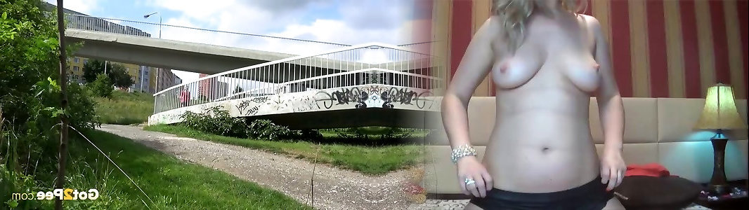 Long Legged raven haired wench peed a pile on gigantic road bridge