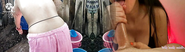 I interrupt while she washes the bathroom to touch her yummy coochie