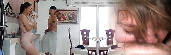 Tenant has a good oral hookup in exchange for leaving her house for more time - Porno in Spanish